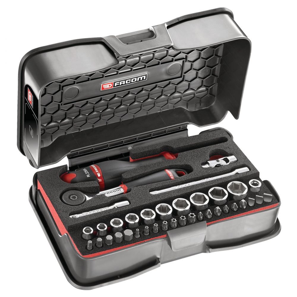 Coffret Douilles 1/4, 6 Pans Métriques et Embouts, Plateau Mousse (37 Pièces)